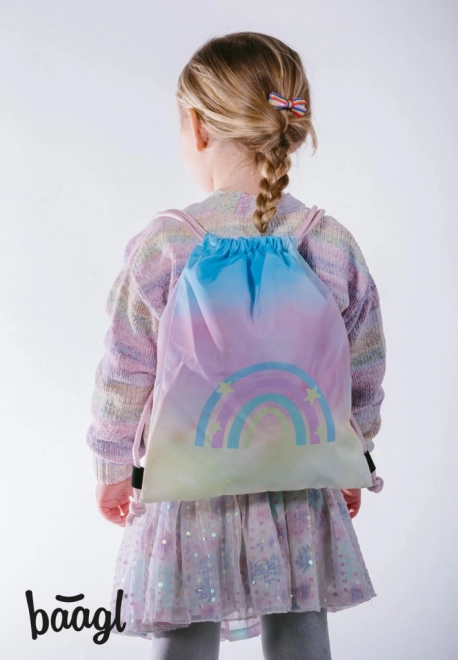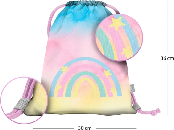 Lehký a stylový sáček BAAGL Rainbow pro děti do školky i na volný čas. Ideální na obuv a drobnosti, vyrobený z pevného omyvatelného materiálu se zdrhováním na tkanice, které umožňují pohodlné nošení na zádech.