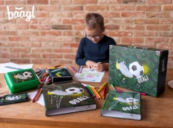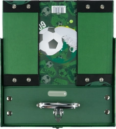 Hledáte odolný a zároveň designový školní kufřík pro přenášení výtvarných potřeb, sešitů či drobností? Skládací školní kufřík BAAGL s fotbalovým motivem zaujme nejen vzhledem, ale i funkčností. Pevný laminovaný papír a okované rohy zajišťují dlouhou životnost, kovové kování dodává stabilitu a klasická přezka udrží obsah v bezpečí.