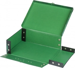 Pevný laminovaný papír, okované rohy a kovové kování chrání kufřík před opotřebením i při každodenním používání.