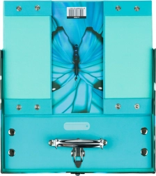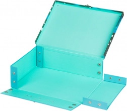Díky chytrému systému patentek kufřík snadno rozložíte pro úsporu místa a opět pevně složíte během chvilky. Kovové ucho zajistí pohodlné přenášení a spolehlivá přezka udrží obsah v bezpečí.