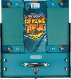 Díky kovovému uchu se pohodlně nosí a klasická přezka udrží obsah v bezpečí. Je ideální na výtvarné potřeby, sešity, drobnosti i dokumenty, a zároveň potěší originálním dinosauřím designem, který děti zaujme.