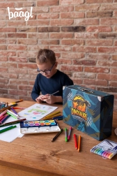 Dinosauří motiv nadchne děti a přitom zůstává praktický pro každodenní používání ve škole i doma.
