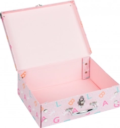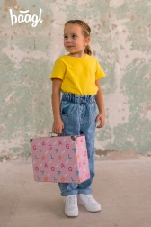 Skládací kufřík BAAGL Logo v růžové barvě spojuje hravý design s praktickou funkčností. Pevný laminovaný papír a okované rohy zajišťují dlouhou životnost, zatímco kovové ucho a spolehlivá přezka usnadňují každodenní použití ve škole i doma.