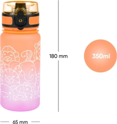 Tato dětská láhev z kvalitního tritanu je ideální do školy, na výlety i sport. Díky uzamykatelnému víčku neunikne ani kapka a praktické poutko usnadní přenášení. Atraktivní oranžovo-růžový gradient se zvířecími motivy si děti zamilují.