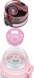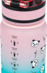Certifikovaný tritan neabsorbuje pachy, je zdravotně nezávadný (bez BPA, PVC a ftalátů) a odolný vůči nárazům. Barevný růžovo‑tyrkysový přechod s veselými pandami motivuje k pravidelnému pití a díky poutku je láhev vždy po ruce.