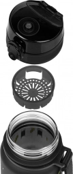 Praktické flip víčko s pojistkou brání nechtěnému otevření v batohu a zajišťuje pohodlné pití jednou rukou. Součástí je vyjímatelné sítko pro ovocné nápoje či čaj; materiál je vhodný i pro horké nápoje. Integrované poutko usnadňuje přenášení a láhev tak skvěle poslouží ve škole, na tréninku i na cestách.