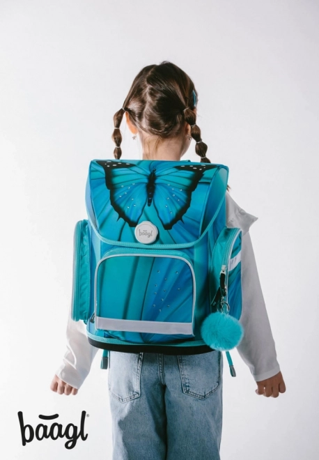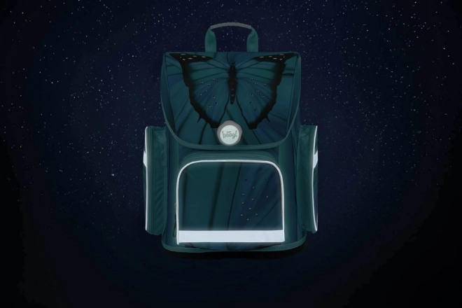 Penál nabízí klasické uspořádání s dvěma chlopněmi a kvalitním zipem. Sáček s motivem motýla je skvělý na přezůvky nebo jiné drobnosti a lze ho snadno připnout k aktovce. Praktický box na svačinu je ideální pro uložení oběda, zatímco ochranné desky na sešity A4 zajistí, že dokumenty zůstanou v pořádku.
