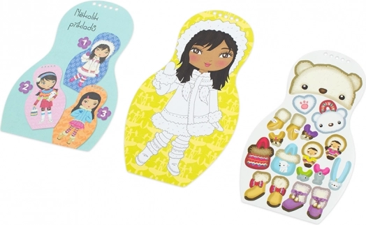 Kreativní omalovánky 'Oblékáme Eskymácké Panenky Anouk' nabízí jedinečnou možnost poznat módu různých kultur. Každá knížka je plná vzorů, samolepek a dalších prvků pro tvorbu nesčetných modelů: