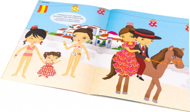 Tato půvabná kniha samolepek představí dětem tradiční oděvy z různých koutů planety – od tahitských a španělských až po indiánské a eskymácké. Zkušená ilustrátorka a stylistka Julie Camel vtiskla každé postavičce i kulisám autenticitu, díky které se učení mění v radostný objev.