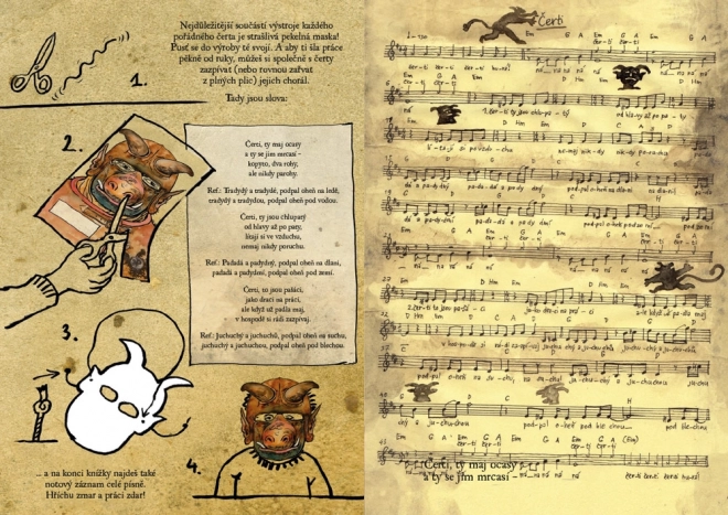 Přeneste se do světa pekelných pověstí a fantazie s knížkou na motivy pohádky Čertí brko. Zjistíte, jak se z drobných růžků staly v lidových povídačkách velerohy a proč čerti nosí kopyta, ocasy a chrlí oheň. Součástí knihy jsou masky čertů k vystřižení, se kterými pobavíte i postrašíte všechny hříšníky.