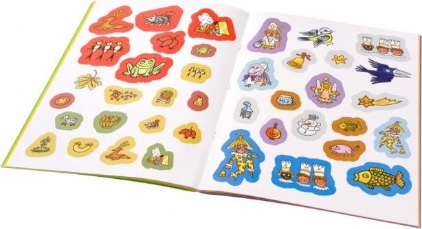 Uvnitř knihy naleznete mnoho samolepek, které děti mohou využít k řešení hádanek nebo k vlastní zábavě. Tento kreativní nástroj pomáhá nejen rozvíjet dětskou paměť, ale také jemnou motoriku.
