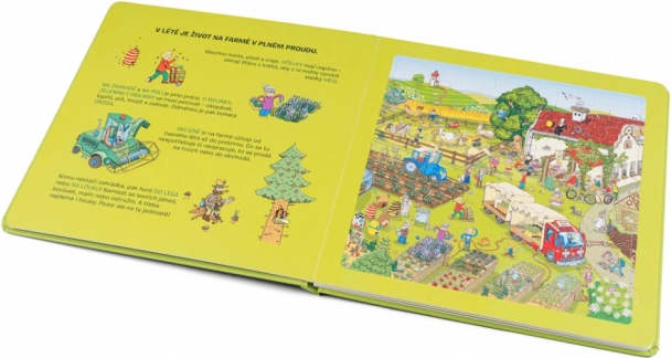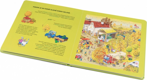 Objevte svět farmy s roztomilými postavičkami a vtipnými scénami. Kniha provází ročními obdobími a odhaluje tajemství farmářského života: