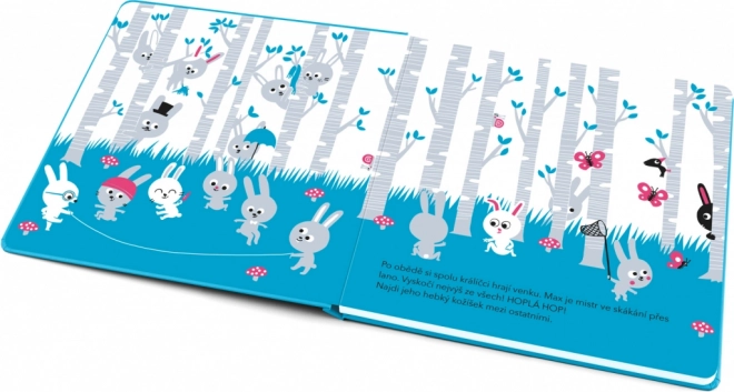 Objevte originální leporelo, které není jen ke čtení a prohlížení. Děti na každé dvojstraně hledají králíčka Maxe – a protože je mezi mnoha roztomilými ušáky dobře schovaný, pomůže hmat: stačí přejet dlaní po stránce a nahmatat jeho sametový kožíšek.