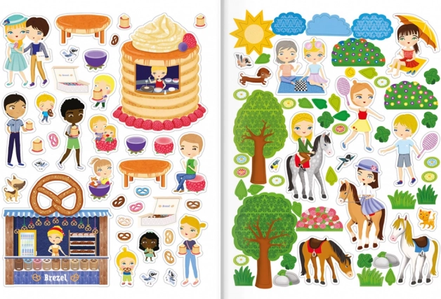 Součástí příběhového rámce je panenka Hanna a její kamarádky Else a Steffi, se kterými děti procestují metropoli hravou formou. Díky kombinaci samolepek a faktických zajímavostí kniha podporuje jemnou motoriku, kreativitu a poznávání světa.