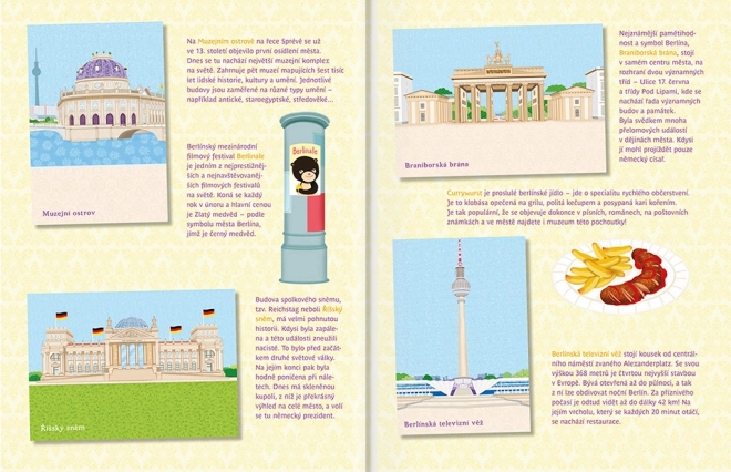 Tato kreativní knížka zavede děti do nejznámějších koutů německé metropole. Na každé stránce čekají ikonická místa Berlína, která si mohou malí objevitelé dotvořit pomocí bohaté sady samolepek. Kromě zábavy přináší knížka také vzdělávací prvky – krátké informace o památkách a historii města, které podporují přirozenou zvídavost.