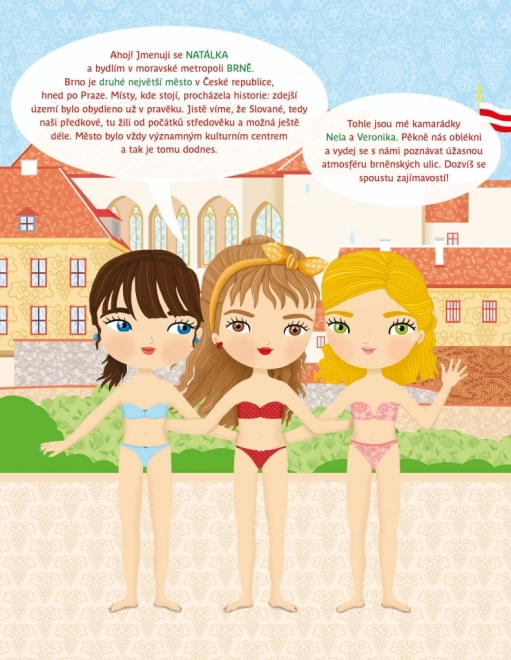 Vydejte se s panenkou Natálkou a jejími kamarádkami za poznáním Brna v zábavné samolepkové knížce. Děti doplní brněnské scenerie opakovaně použitelnými samolepkami a při tom objeví památky, známá místa i zajímavosti moravského regionu. Skvělá volba pro kreativní hraní a učení formou hry.