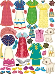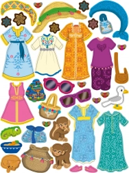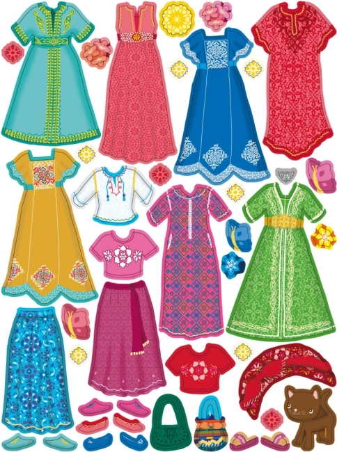 - Kreativní zábava – opakovaně nalepitelné kousky oblečení a doplňky pro různé scény.