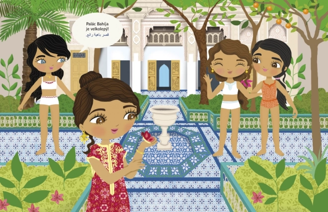 Samolepková knížka Šaty pro LOUNU děti vezme na barevnou výpravu do Maroka. Společně s panenkou nahlédnou do každodenního života místních lidí, poznají jejich zvyky a navštíví ikonická místa – od pouště a oáz přes vodopády Uzúd v pohoří Atlas až po tradiční súk.