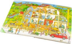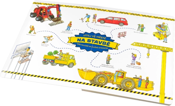 Ve městě se pořád něco děje – kope se, opravuje, staví a zvelebuje. Děti budou na stránkách hledat náklaďáky, míchačky, bagry, jeřáby nebo vysokozdvižné vozíky, poznají práci řemeslníků i toho, jak na vše dohlíží předák a stavbyvedoucí. Nechybí ani architekt, fotograf či zahradník a spousta postaviček s vlastními mikropříběhy. Tato dětská kniha o stavbě je skvělá hledací (wimmel) kniha, která přirozeně rozvíjí vyjadřování a pozornost.