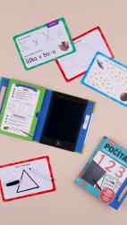 - 25 stíratelných karet (50 aktivit), kouzelný tablet, fix s houbičkou