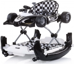 Odnímatelný hrací pult ve tvaru formule podporuje smyslový rozvoj a lze jej proměnit v autíčko na tlačení.