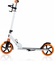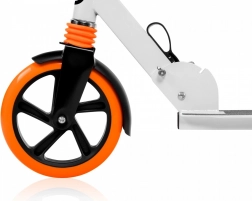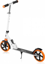 Městská koloběžka Lionelo Luca White Orange kombinuje lehkou hliníkovou konstrukci, velká PU kola 200 mm, nastavitelná řídítka ve 3 stupních a nosnost až 100 kg. Nabízí plynulou jízdu díky ložiskům ABEC‑7, bezpečné zadní blatníkové brzdy, protiskluzový deck a praktické skládání s popruhem na přenášení a stojánek.
