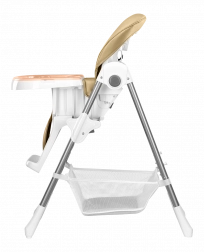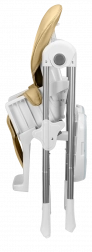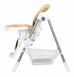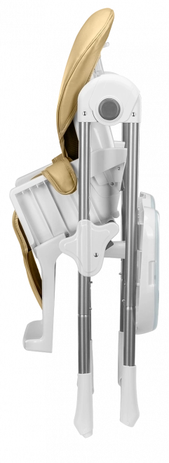 Bezpečnost zajišťují pětibodové pásy, zesílená konstrukce a protiskluzové podložky. Praktické detaily jako odnímatelný podnožník, velký koš na hračky a doplňky nebo kolečka pro přesun usnadní každodenní používání. Po skončení jídla židličku během pár vteřin složíte do úsporné šířky přibližně 30 cm.