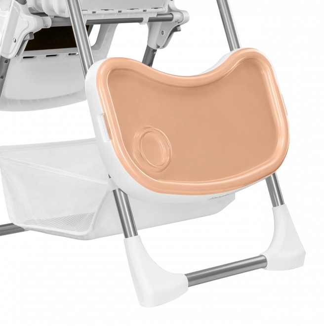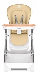 Praktická a bezpečná jídelní židlička pro každodenní krmení i hraní. Nabízí 6stupňové nastavení výšky, polohovatelnou opěrku zad, 3polohovou posuvnou tácu a pětibodové bezpečnostní pásy. Potah z eko kůže se snadno čistí, nechybí velký koš na příslušenství, kolečka pro snadné přemístění a rychlé skládání do kompaktní velikosti.