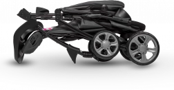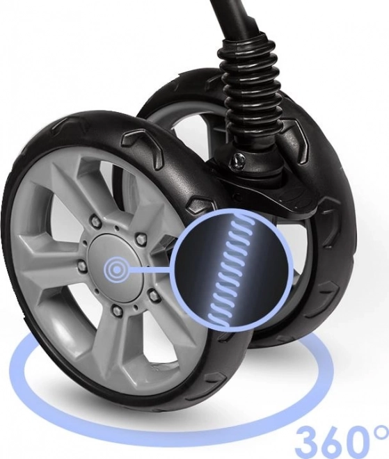 Odolná pěnová kola EVA zvládnou městské nástrahy. Přední kola s měkkým odpružením tlumí otřesy a umožňují blokaci pro přímou jízdu.