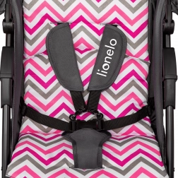 Lehký a obratný sportovní kočárek Lionelo Emma Plus nabízí pohodlí a bezpečí pro děti od 6 měsíců do cca 3 let. Díky plynulé regulaci opěrky až do lehu, nastavitelnému podnožníku a rozkládací stříšce si dítě užije každou jízdu. Praktická tácová bariérka s držákem nápoje, organizér u rukojeti a prostorný košík usnadní každý výlet. Kola z odolné EVA pěny s možností blokace přímého směru a pětibodové pásy zajišťují bezpečnost a komfort.