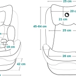 Pro vyšší bezpečnost je sedačka vybavena 5bodovým pásem s měkkými polstry a boční ochranou z PP a EPS pro efektivní absorpci energie při nárazu. 7stupňové nastavení opěrky hlavy a 4 polohy sklonu se postarají o ergonomii a pohodlí v každé fázi růstu. Odnímatelný potah lze snadno prát, takže údržba je rychlá a bez starostí.