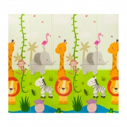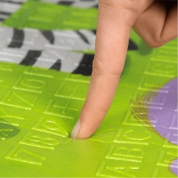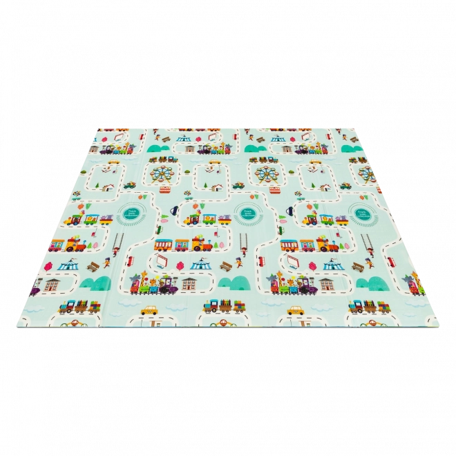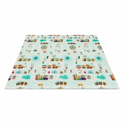 Jedna podložka, dvojnásobná zábava. Barevná safari zvířátka a interaktivní mapa města inspirují k vyprávění příběhů a rozvoji fantazie.