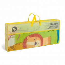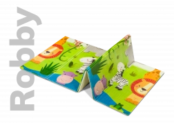 Herní podložka Lionelo Robby nabízí velkorysý prostor 180 × 200 × 1 cm pro bezpečné dovádění batolat i starších dětí. Oboustranný potisk rozvíjí fantazii – na jedné straně zvířátka ze Safari, na druhé mapu města pro autíčka a příběhy z ulic. Díky odolné XPE pěně podložka tlumí nárazy, přitom je dostatečně tuhá pro první pokusy o vzpřímení a lezení.