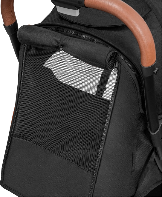 Pro maximální komfort dítěte nechybí plynulé, vícestupňové polohování opěrky zad pomocí otočného knoflíku, nastavitelná opěrka nohou a vícestupňová stříška se síťovaným panelem pro lepší cirkulaci vzduchu. Rodiče ocení odnímatelné madlo, rukojeť z eko-kůže, velký koš na nákupy a bohaté příslušenství.