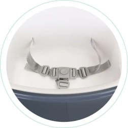 Pětibodové pásy a zámek proti sesunutí drží dítě ve správné poloze. Tvarované sedátko a opěrka zajišťují komfort i při delším sezení.