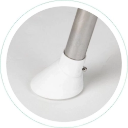 Díky chytrému řešení jednoduše odšroubujete prodlužovací části nohou i opěrku nohou a během chvilky z vysoké židle vznikne nižší křesílko pro samostatné sezení, hraní, kreslení či malování – bez obav z nepořádku. Protiskluzové patky chrání podlahu a zajišťují jistotu při používání.