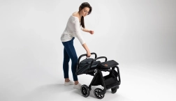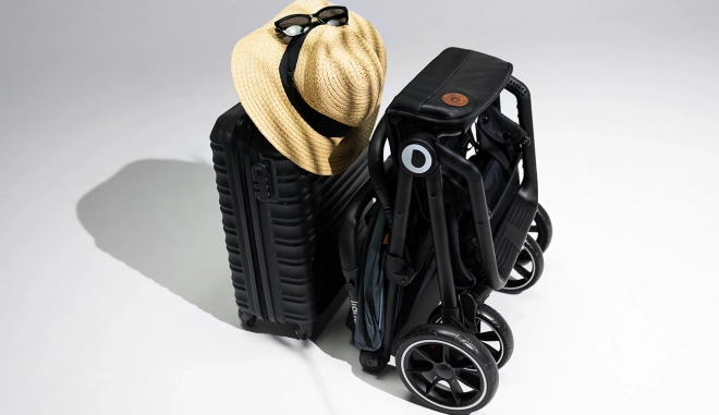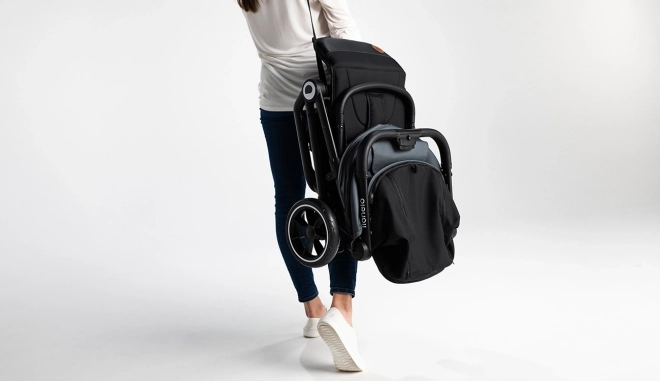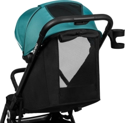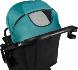 XXL stříška s voděodolnou úpravou a filtrem UPF50+ poskytne spolehlivou ochranu proti slunci i dešti. Bezpečí zajišťují 5bodové pásy a reflexní prvky pro lepší viditelnost. Po stisku tlačítka se kočárek automaticky složí do kompaktního tvaru – snadno jej přenesete pomocí speciálního popruhu a ochranného potahu.