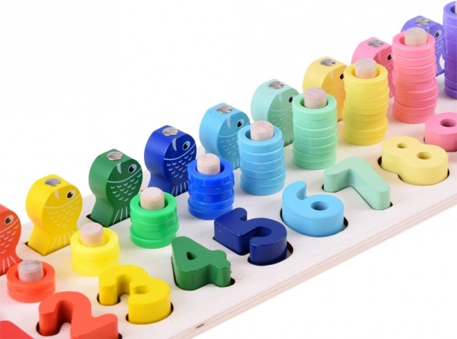 - Dřevěné rybičky s čísly.