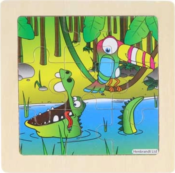 Tato kvalitní dřevěná skládačka s motivem džungle je ideální první puzzle pro malé děti. Díky vyfrézovanému okraji v podložce dílky lépe zapadnou a dítě se může soustředit na radost ze skládání. Ilustrace s veselými opičkami podporují vnímání barev a tvarů.