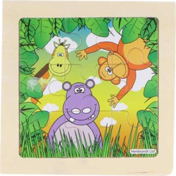 Roztomilé dřevěné puzzle s motivem džungle a opiček potěší nejmenší děti. Díky 9 pevným dílkům a dřevěné podkladové desce s vyfrézovaným okrajem se skládačka snadno skládá a zároveň rozvíjí jemnou motoriku, logiku a představivost.