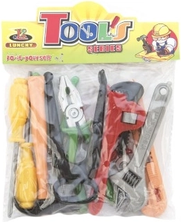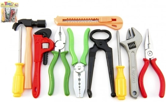 Propracovaná sada nářadí z plastu je u dětí velmi oblíbenou hračkou, zejména potěší malé kutily, kteří si s nářadím vyhrají celý den a mohou pomáhat svému tatínkovi při drobných opravách. Sada obsahuje cca 10 ks různých druhů nářadí.