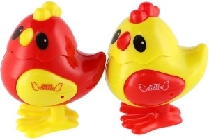 Otoč klíčkem, pusť a sleduj veselé skákání kuřátka. Jednoduchý mechanismus pro nekonečnou zábavu.