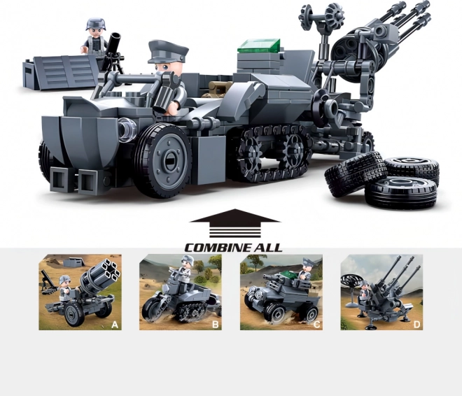 Tato stavebnice přináší komplexní pomůcky pro vytváření vojenských scénářů s německou protivzdušnou technikou. Hlavní části zahrnují raketomet, protiletadlové dělo, obrněné vozidlo a speciální pásovou motorku. Kombinováním můžete vytvořit velký model pojízdné útočné jednotky.