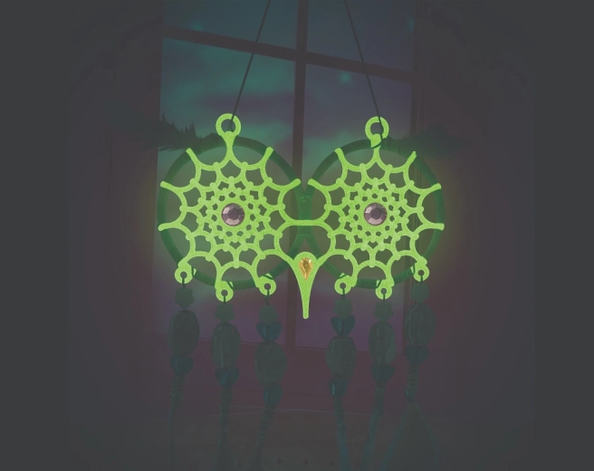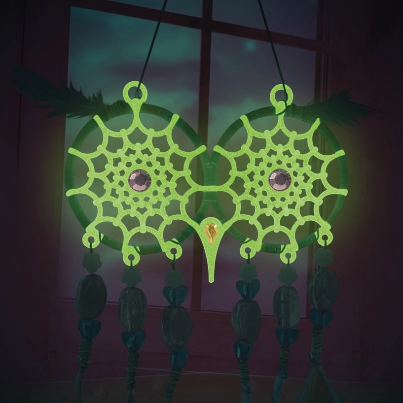 Objevte magický svět tvoření a klidného usínání. Sada Nebulous Stars obsahuje vše potřebné pro výrobu dvou sovích lapačů snů, jejichž oči a nitě září ve tmě. Dekorace krásně vynikne u postele nebo v dětském pokoji a dodá mu jemné světélkující kouzlo.