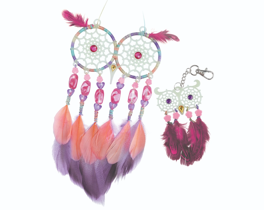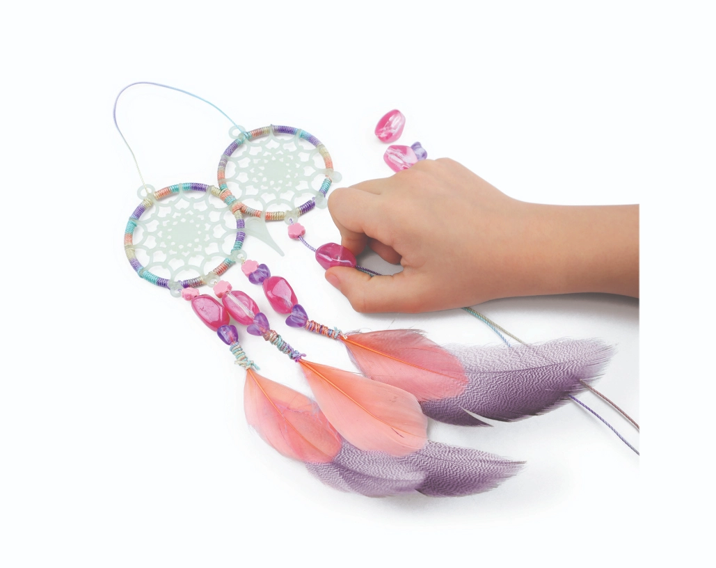 Jednoduché provlékání nití, navlékání korálků a zdobení peříčky zvládnou děti od 7 let. Skvělá aktivita na odpoledne i dětské oslavy.