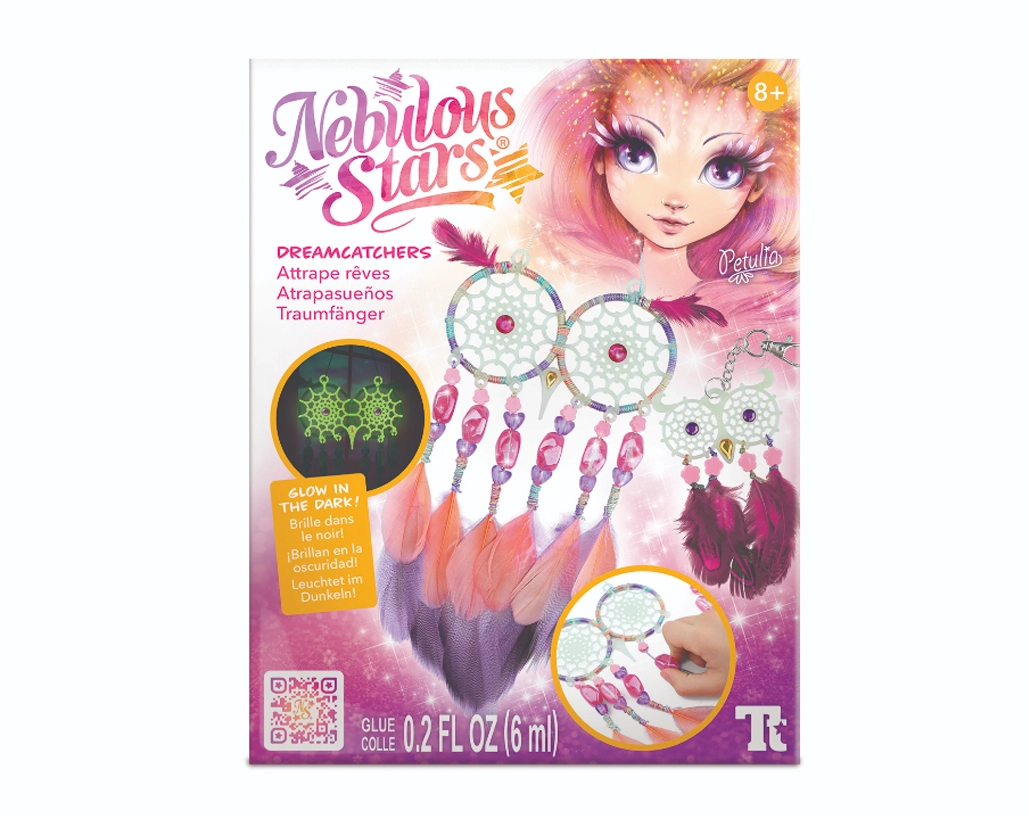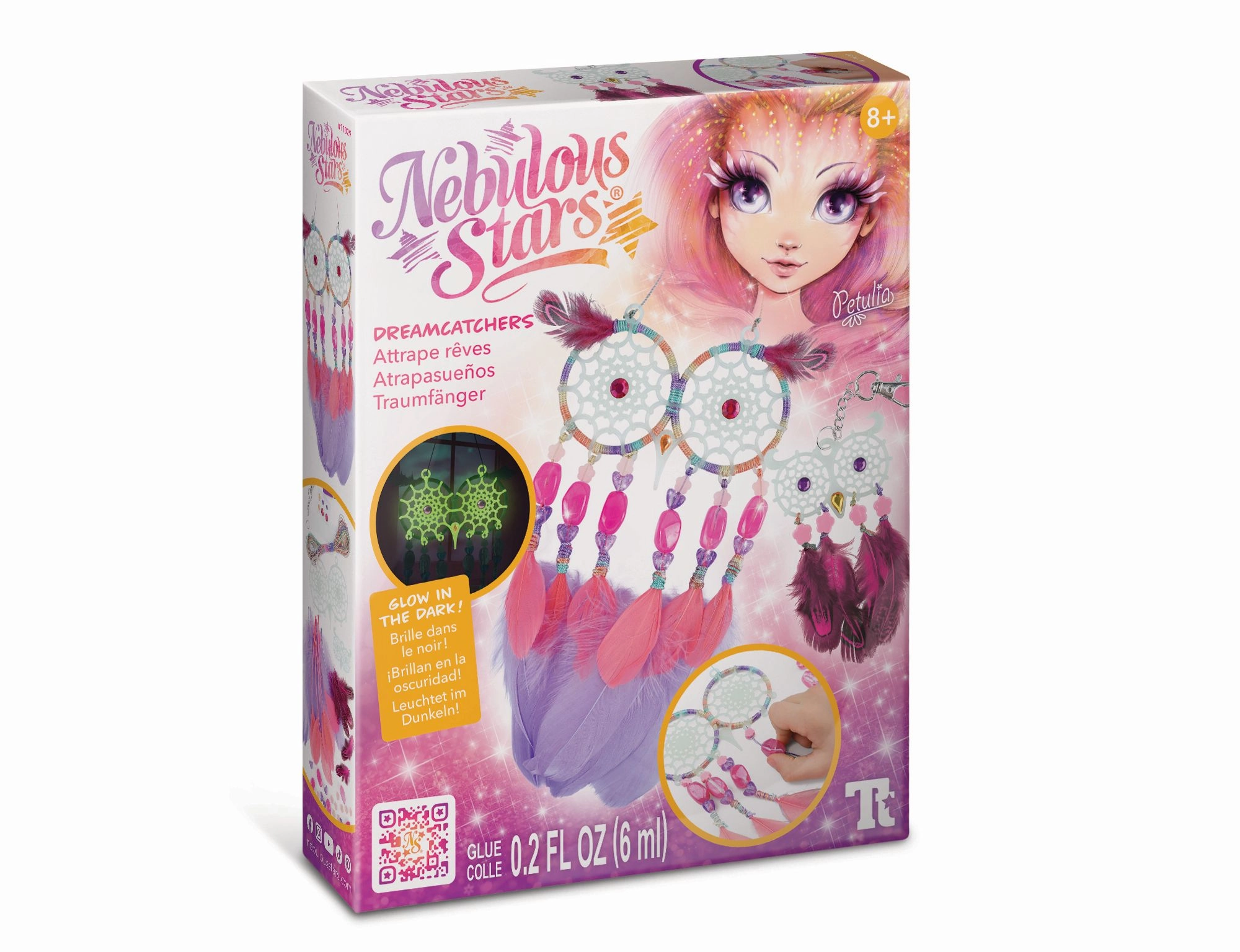 Vytvořte si vlastní kouzelné lapače snů se značkou Nebulous Stars! Tato kreativní sada umožní dětem vyrobit 2 soví lapače snů s efektem záření ve tmě, zdobené peříčky, korálky a kamínkovými samolepkami. Skvělá aktivita pro rozvoj jemné motoriky, kreativity a pro zklidnění před spaním.