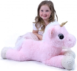 Růžové tělíčko, bílá hříva a ocas, puntíkovaná kopýtka a třpytivý zlatý roh vytvářejí pohádkový vzhled, který děti milují.
