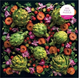 Užijte si estetický zážitek s motivem od slavné labužnice a fotografky Sarah Phillips, která stojí za projektem Ugly Produce is Beautiful. Kontrast černého pozadí s živými tóny zelených artyčoků, rubínových rajčat a fialových květů vytváří působivý obraz, který vynikne při skládání i po zarámování.