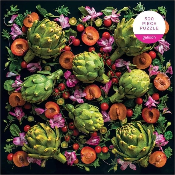 Objevte kouzlo dokonale nedokonalých plodů s puzzle GALISON Artyčokové květy 500 dílků. Motiv od fotografky Sarah Phillips přináší kontrastní kompozici s artyčoky, rajčaty a květy na černém pozadí. Díky kvalitnímu tisku, matné povrchové úpravě a precizně vyřezaným dílkům si užijete plynulé skládání a věrné podání detailů a barev. Puzzle jsou vyrobeny z recyklovaných a udržitelných materiálů a baleny v pevné dárkové krabici s přiloženým návodným obrázkem.