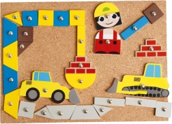 Seznamte se s zatloukací hrou Staveniště, která je ideální pro malé mistry stavitele od 3 let věku. Tato hra podporuje rozvoj jemné motoriky, koncentrace a kreativity skrze interaktivní hru s korkovou deskou a dřevěnými tvary.
